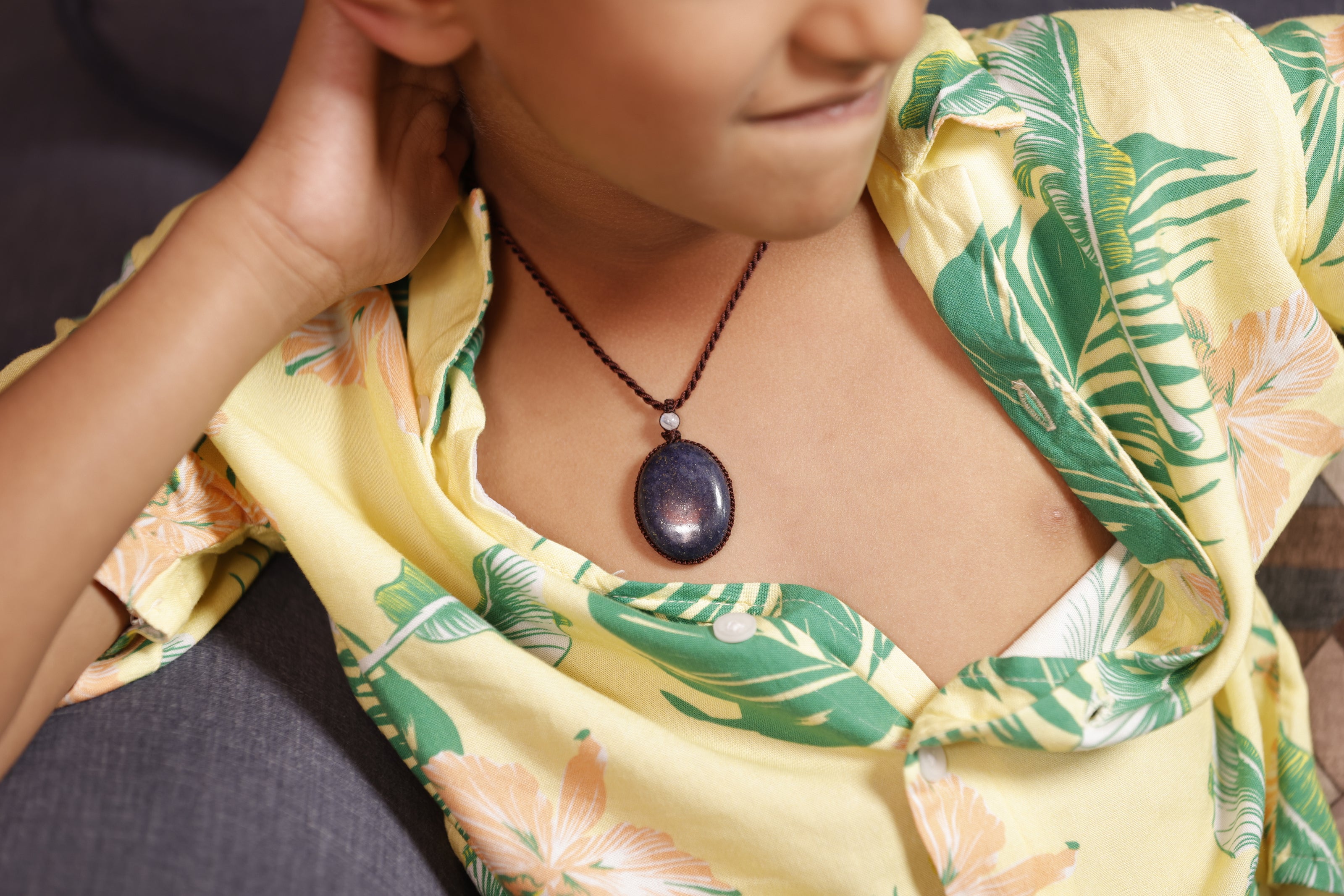 LAPIS LAZULI Blue VIOLET Pendant - With adjustable macrame cord