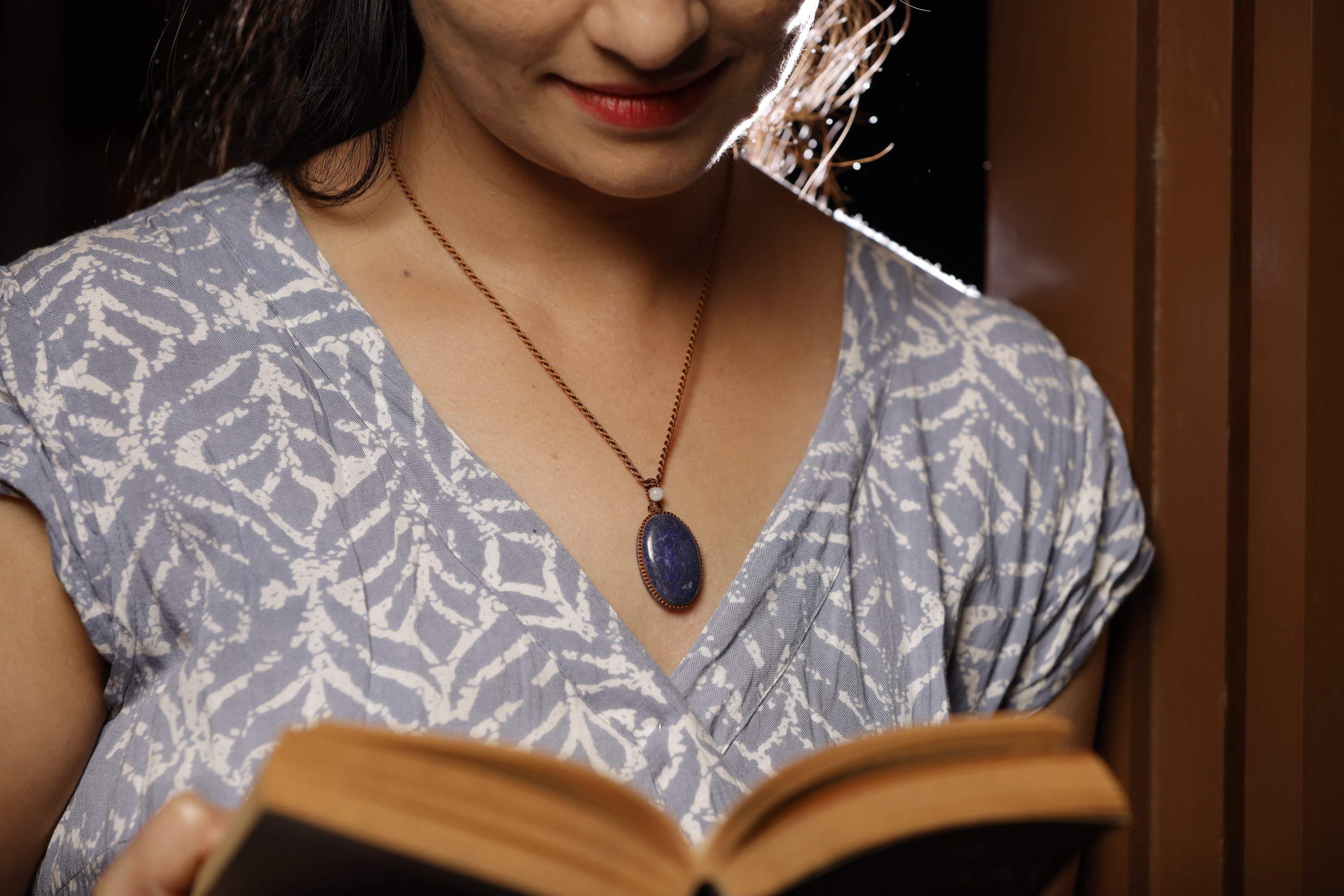 LAPIS LAZULI Blue Pendant - With adjustable macrame cord